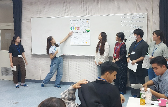 World Campus は世界各国の若者が日本各地でホームステイや交流を行う団体です。2024年6月に開催された際には、ノルウェー、オーストラリア、アメリカ、フィンランド、スウェーデンから13名が訪問しました。本学への交換留学生も交え国際色豊かなイベントとなりました。