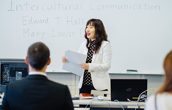 海外の学会では、英語のなまりの多様性に驚かされたりとまどわされたりします。それでもお互いに通じるのは、相手の話を聞きたい・相手に気持ちと考えを届けたいという、熱意があるからだと思います。けれども、それらコミュニケーションが成り立つのも、文法や単語という、意思疎通の「交通ルール」をお互いに守っているからです。それら「ルール」を守りつつ、言葉の「行間」を理解するためのコミュニケーション力を、ぜひこの学科で身につけてほしいと願っています。
