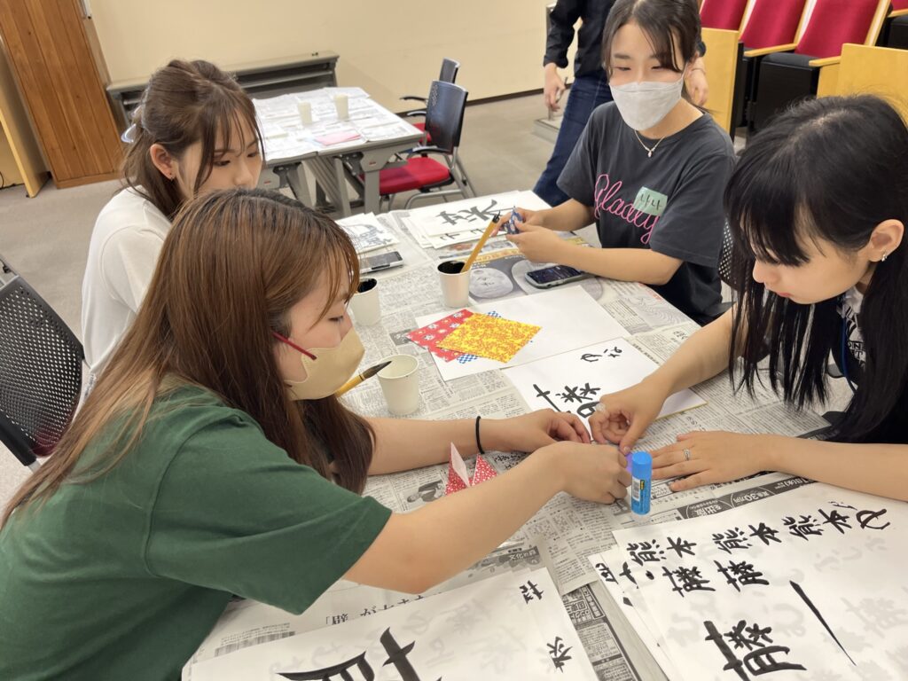 最後に、色紙に好きな文字を書き、折り紙や絵で色紙を飾り付けし、素敵な作品ができあがりました!
