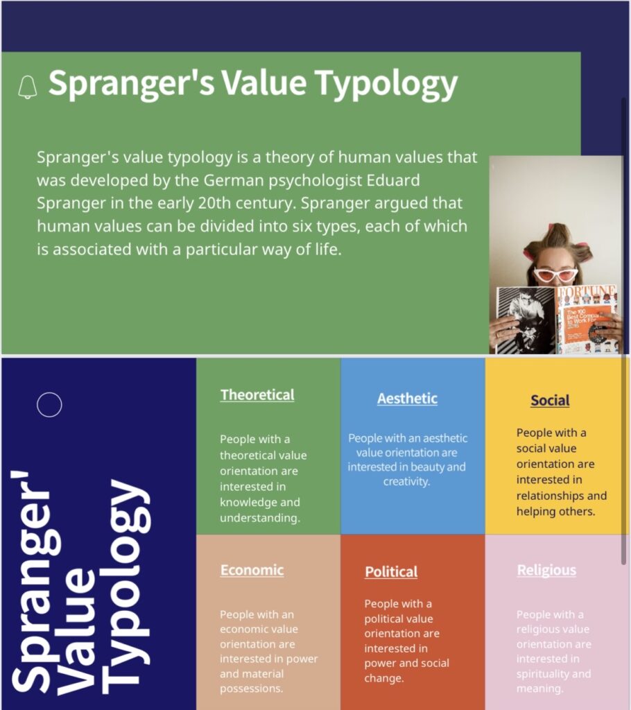 話し合いで登場したのが、Spranger’s Value Typology(シュプランガーの価値観分類)です。一度は聞いたことがある人物ではないでしょうか。