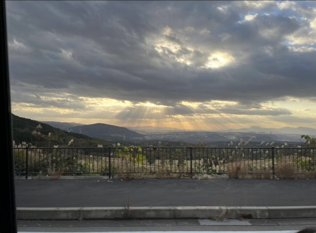 今回のツアーで特に印象的だったのは、バスで大学に帰る途中、阿蘇の夕日を一緒に楽しんだことです。みんなの表情を見て、国籍に関係なく、夕焼け空と緑豊かな大地は美しいものなのだと思いました。文化や言語の違いを超えて、感動を分かち合えたことが幸せでした。