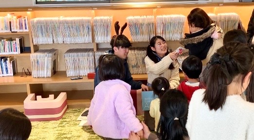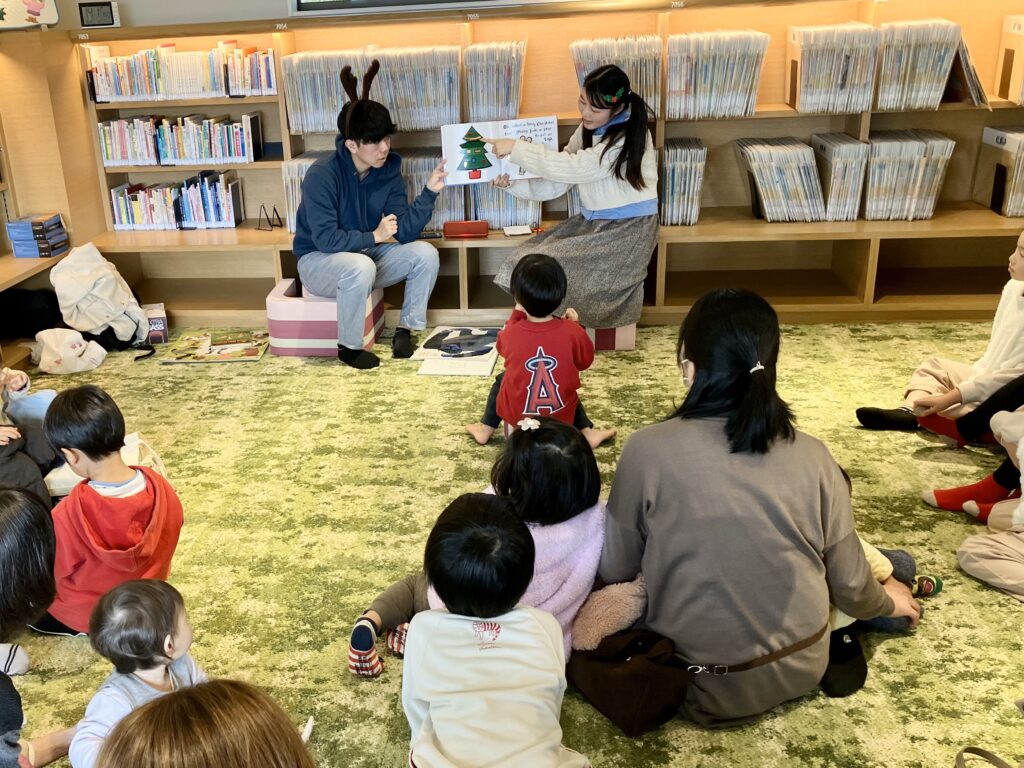 12月23日(土)に、宇城市立図書館の「クリスマススペシャルおはなし会」に、英語英米文学科4年 栗原由妃乃・2年 千綿海大の2名が出演させていただきました。