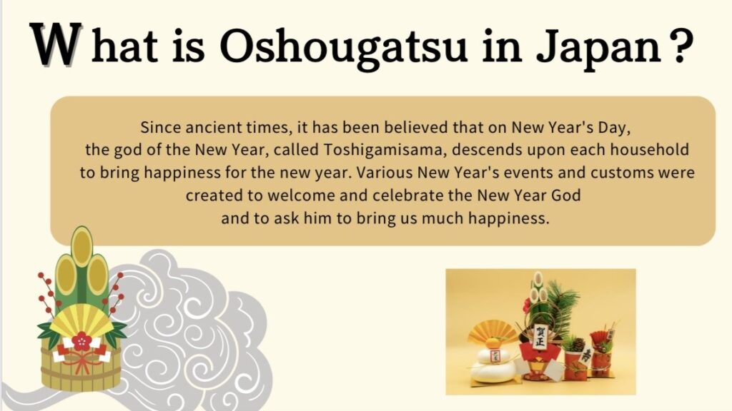 古来から、日本では正月に、年神様と呼ばれる新年の神が訪れ、各家庭に幸せをもたらすと信じられてきました。年神様を歓迎するために、様々な正月の行事や慣習が生まれました。31日の大掃除、松迎え、しめ縄飾り、そしておせち料理は、すべて年神様を迎えるための備えだったんですね。