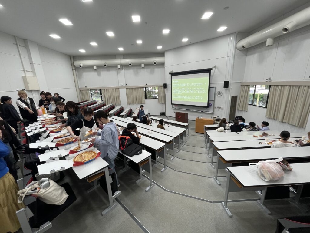 昼休みには、みんなでピザを食べました。たくさんの会話が生まれ、和やかな雰囲気となり、