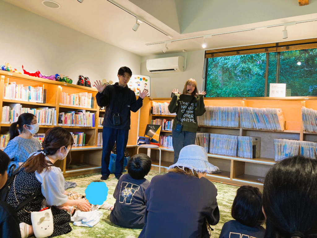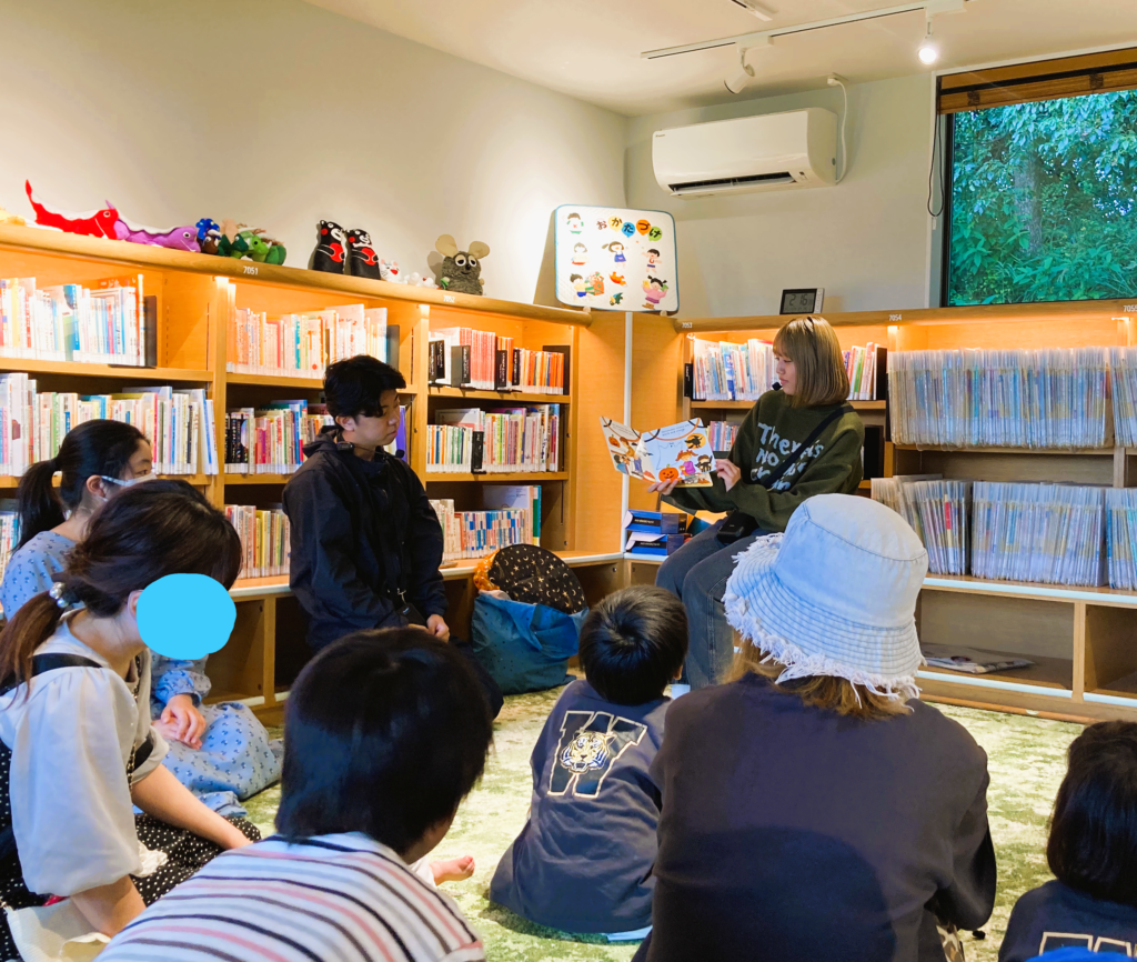 10月26日(日)に「おはなし届け隊」のメンバー2名(英語英米文学科3年・千綿海大、1年・三浦佳奈)がレイヴィン先生の引率のもと、宇城市立図書館にて「えいごおはなし会」を実施しました。