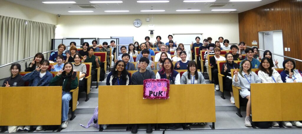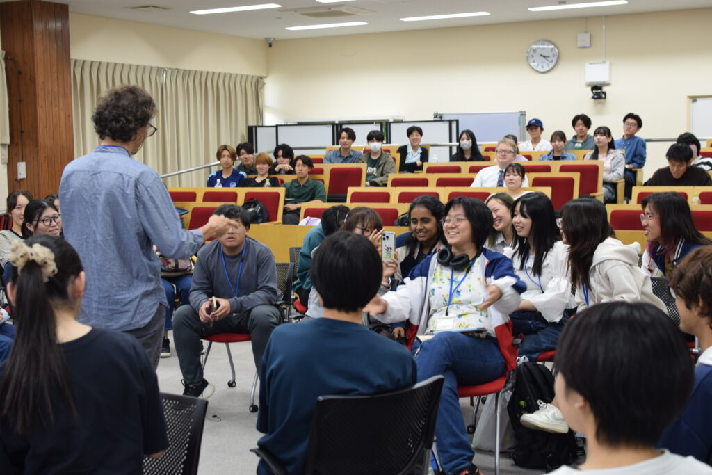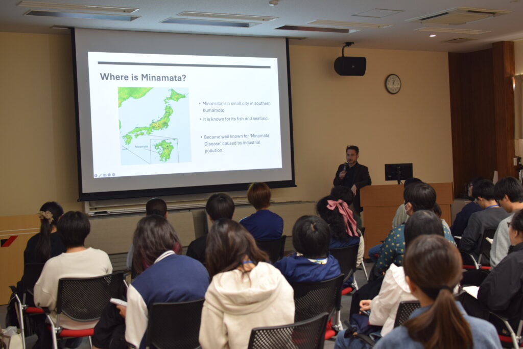昼食後には、英語英米文学科のリカード先生による講義を受けました。水俣病や熊本地震の話を通して、どのように持続可能な社会にしていくかについて考え、話し合うことができ、有意義な時間を過ごすことができました。